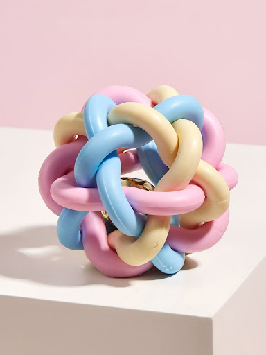Engage your pet’s senses and curiosity with this charming Pastel Interlocking Puzzle Ball Dog Toy. Featuring a soft, flexible, and durable rubber construction in delightful pastel shades of pink, blue, and yellow, this toy is designed for gentle chewing, fetching, and interactive play. Hidden within its captivating interwoven design is a small bell, providing a stimulating jingle that will capture your pet’s attention and encourage active fun. It’s the perfect size for puppies and small to medium-sized dogs.